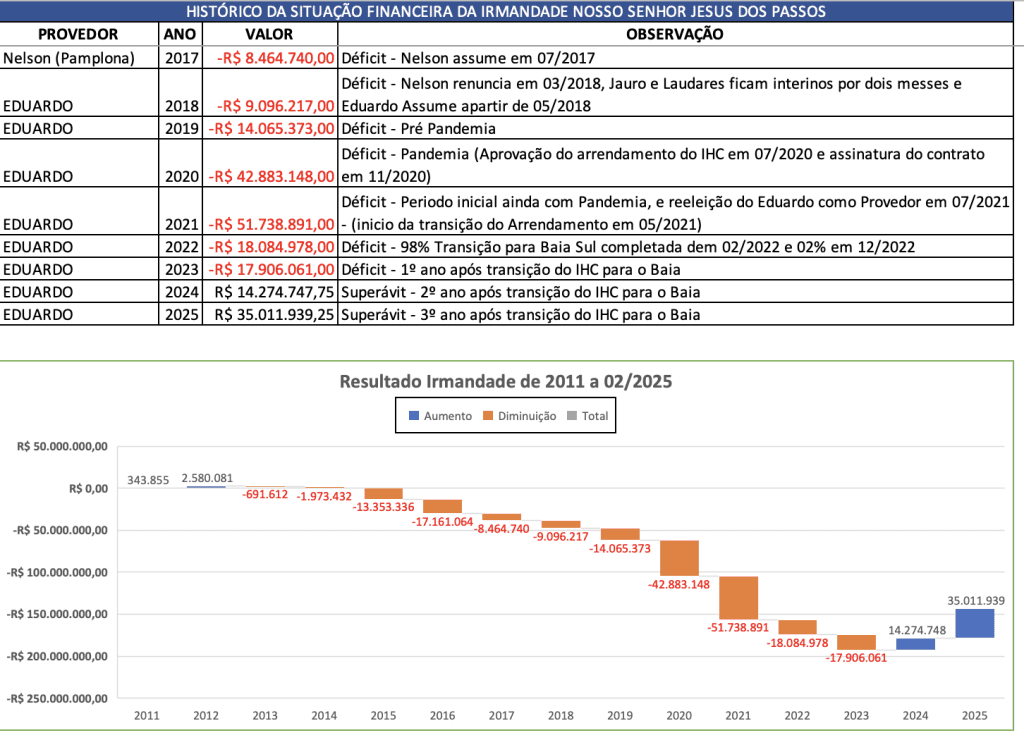 Em novembro de 2020, a decisão de arrendar a administração do hospital foi tomada como uma solução extrema, mas indispensável. Essa intervenção foi crucial para assegurar a continuidade dos serviços e convênios médicos com o SUS e empresas privadas, preservar os empregos e evitar um impacto devastador na comunidade.